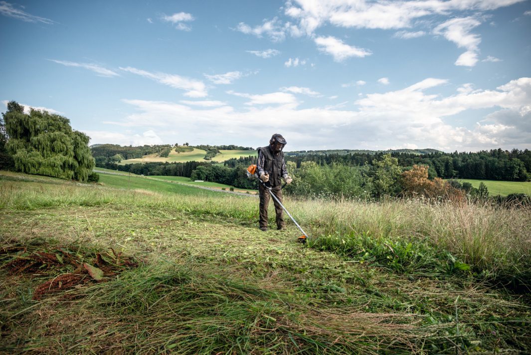 The STIHL FS 230 petrol-driven brushcutter is suitable for mowing tasks in agriculture. This includes, for example, cutting grass for feed production. The brushcutter can be equipped with a grass-cutting blade or mowing head, to suit the application at hand. It features a locking throttle, so that engine output remains constant once it has been set.